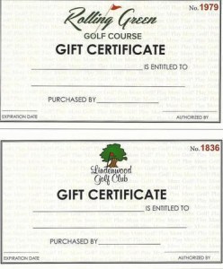 ROLLING GREEN SELLS GIFT CERTIFICATES FOR ANY OF OUR 2 COURSES IN ANY DOLLAR AMOUNT.